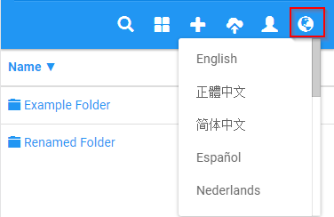 To change the language for the file manager click on the Earth icon then select the language you wish to view the file manager in.